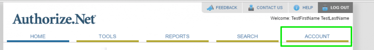 Faça login na sua conta Authorize.net e clique em “Conta” no canto superior direito.