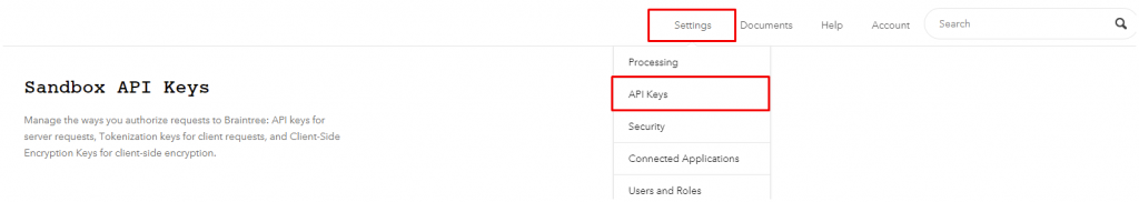 Para configurar o método de pagamento do Braintree no GrowCRM, você precisará obter o ID do Comerciante, a Chave Pública e a Chave Privadado Braintree. Para isso, siga os passos abaixo.