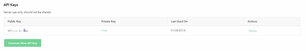 3 – Se você ainda não gerou chaves de API, clique no botão Gerar Nova Chave de API