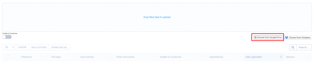 Atualmente,o Google Drive Picker está disponível para os seguintes recursos:TarefasFaturasOrçamentosPropostasLeadsArquivos de perfil do clienteContratosArquivos de projeto