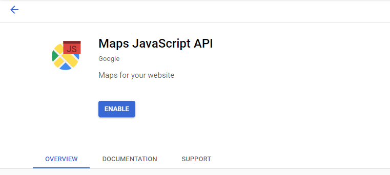 Para usar este recurso, primeiro você precisa ter configurado corretamente a Chave de API do Google em Configuração ->Configurações ->Google e no Google Developers Console, certifique-se de ter habilitado a API Javascript do Maps para o projeto que você criou. Para fazer isso, clique no menu superior esquerdo e depois em APIs e Serviços->Biblioteca e pesquise por API Javascript do Maps.