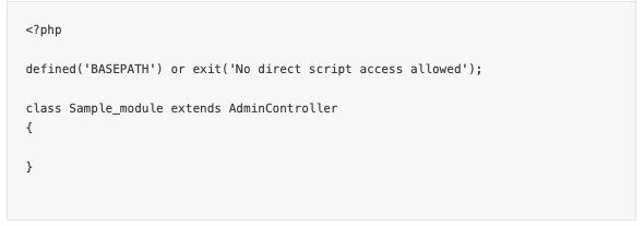 Quando o controlador estender o AdminController, o GrowCRM verificará se o usuário está logado como membro da equipe e, caso contrário, não permitirá que nenhum dado seja enviado a esse usuário e o redirecionará para a área de login do administrador.