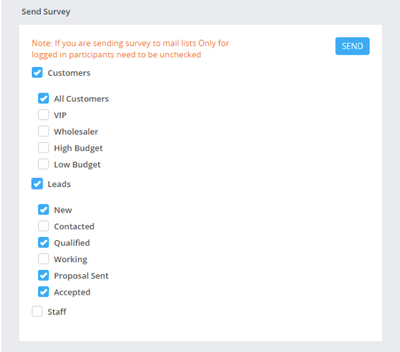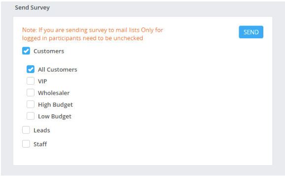 Você precisa selecionar uma lista de e-mails específica para esta pesquisa. Você também pode selecionar várias listas de e-mails.