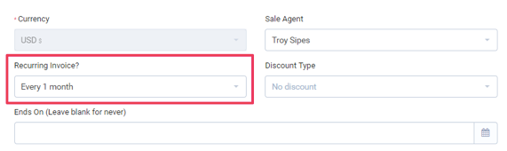 Para parar uma fatura recorrente, você precisará ir até a área de edição da fatura e definir o campo suspenso Fatura recorrente como NÃO.