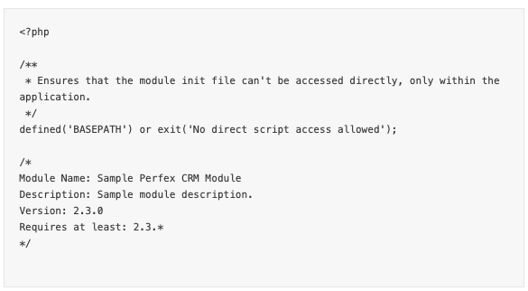 Você deve sempre prefixar quaisquer funções e classes personalizadas para evitar conflitos com funções ou classes padrão do GrowCRM ou com quaisquer outros módulos.