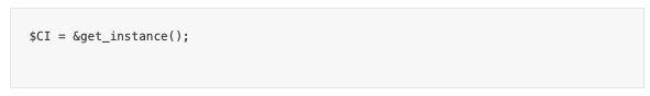 Primeiro, atribua o objeto CodeIgniter a um variável: