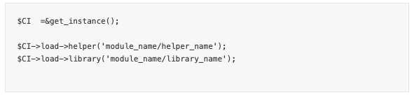Provavelmente você vai querer usar a instância do framework Codeigniter no seu arquivo init do módulo ou em qualquer outro arquivo de módulo que não estenda as classes base do framework.