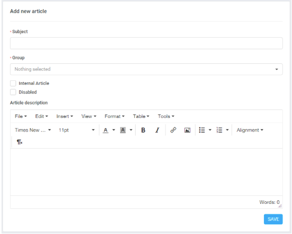 • Desativado – Campo se você precisar desativar temporariamente a exibição deste artigo para clientes/funcionários.