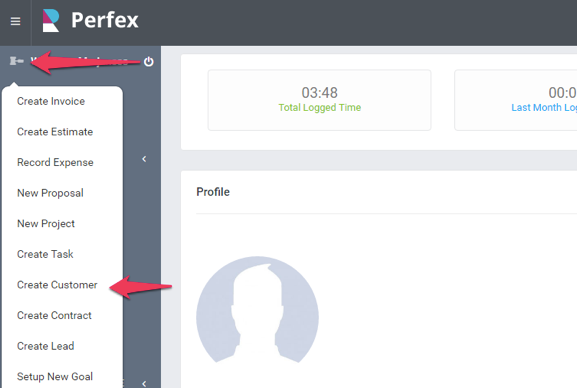 Você pode adicionar novos clientes rapidamente a partir do botão Inserção Rápida no menu superior esquerdo do painel.