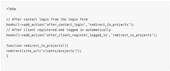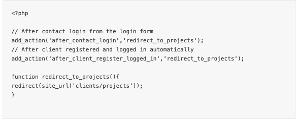 Se precisar redirecionar o contato após o login para uma URL personalizada ou outra URL dentro do CRM, você pode fazer isso com um gancho de ação.