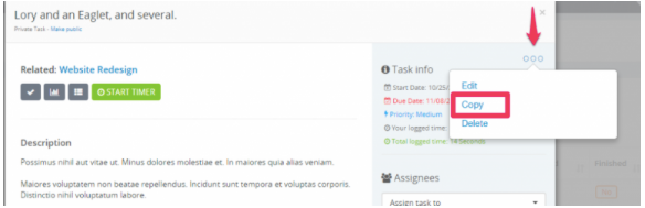 No GrowCRM, as tarefas podem ser facilmente copiadas para serem reutilizadas, economizando tempo valioso ao criar cada tarefa repetidamente.