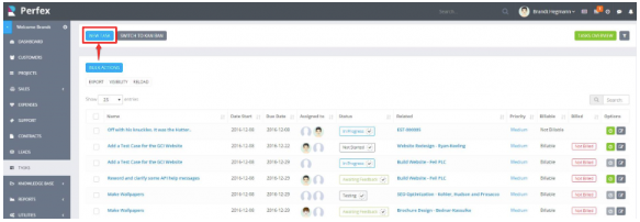 Para criar uma tarefa recorrente, acesse o menu Tarefas na área de administração e clique no botão superior esquerdo Nova tarefa.
