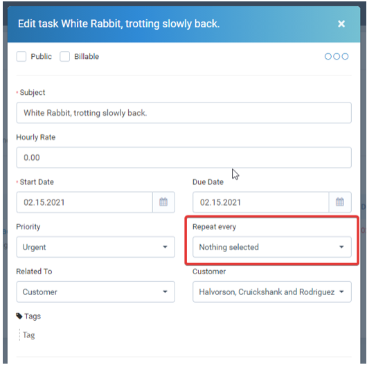 Tarefas recorrentes são um recurso que permite criar tarefas que serão repetidas em um determinado período.