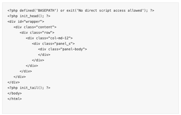 Se você não trabalhou com visualizações do Codeigniter, consulte a documentação oficial para se familiarizar mais.